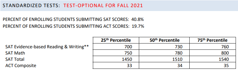 比如 Cornell University(康奈尔大学),在实行 Test-optional 政策后,有 40.8% 的学生提交了 SAT 成绩,有 19.7% 的学生提交了 ACT 成绩。