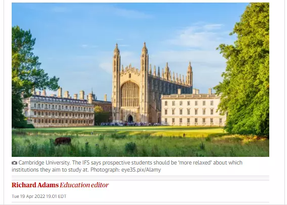 IFS 高级研究经济学家,同时也是该报告的合著者本·沃尔特曼(Ben Waltmann)表示,未来的学生、家长和政策制定者应该注意到这些,不用太执着于让学生上一个顶尖高校。