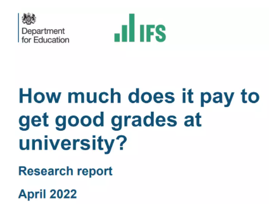 Institute for Fiscal Studies(IFS)的报告发现,在英格兰,拥有一等或二等一 (2:1) 荣誉学位的毕业生在 30 岁时的平均收入高于那些以二等二(2:2)或更低学位完成学业的毕业生。这意味着,对于毕业生而言,学位等级往往比学校的知名度更重要。