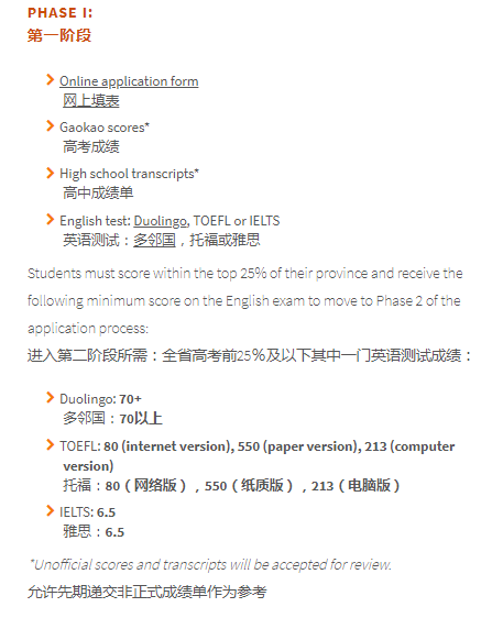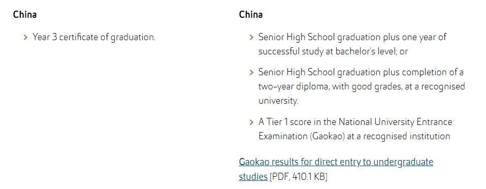 学生如果达到一定的中国高考成绩(一本分数线)且满足必要的语言要求,就有机会直接入读该校的本科课程。