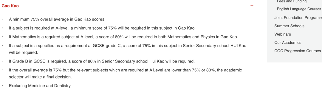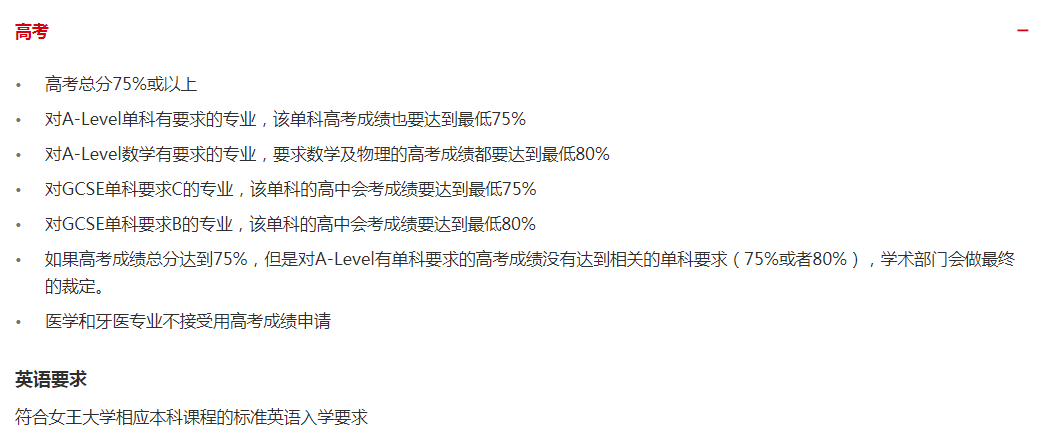 ● 对 A-Level 单科有要求的专业,该单科高考成绩需要达到75%;