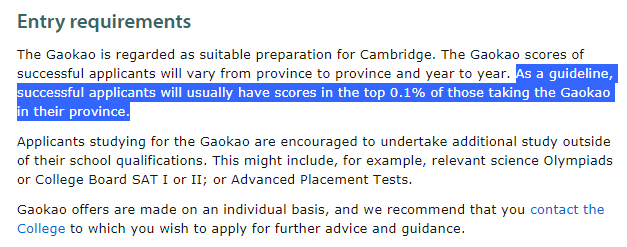 ● 高考成绩需达到所在省份的前25%;