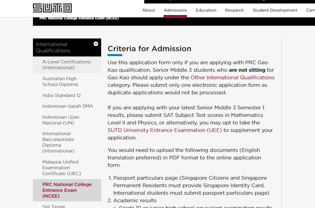 已经完成高考的申请者,需要提供高考成绩以及语言成绩。