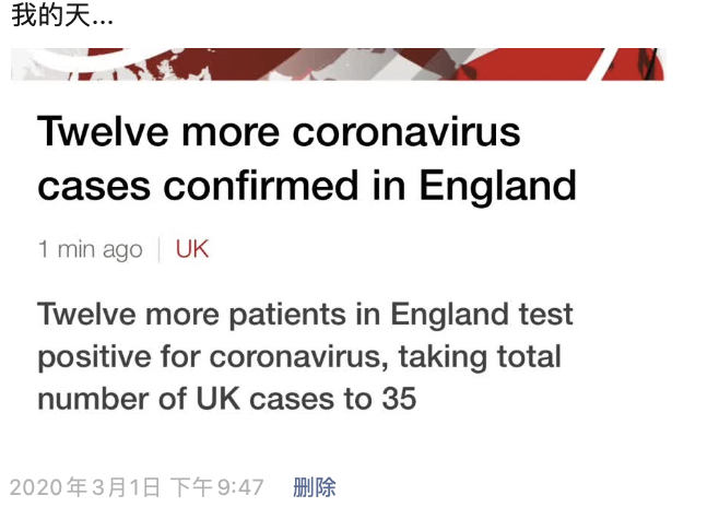 3月初,英国开始出现疫情。清晰记得,3月8号是我好朋友的生日,我们在1月份时约好要去伦敦过,但妈妈坚决反对,最终也没能成行。
