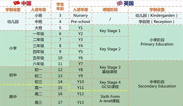 首先,英国的基础学制和中国不太一样。英国基础教育学制为13年,而中国则为12年,比起英国整体上少了一年。