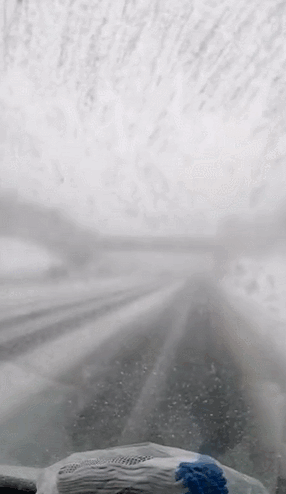 当时高速路上刮着超过128km/h的狂风,狂风卷起了积雪,能见度大大降低。