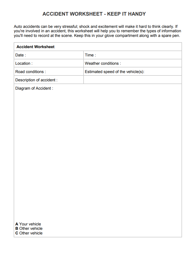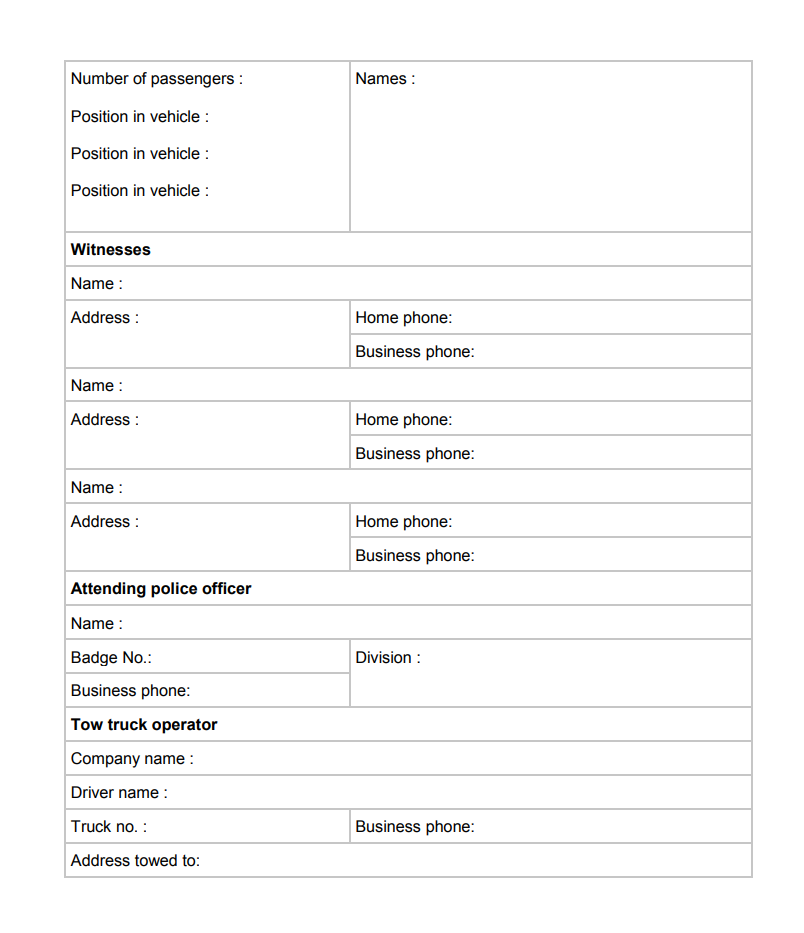 如果你还是不知道要什么信息,那么可以在个省份官网上查询一下当地的交通事故记录表,打印一份放在车里或者拍照保存。下面是一份安省的交通事故细节记录表,仅供参考: