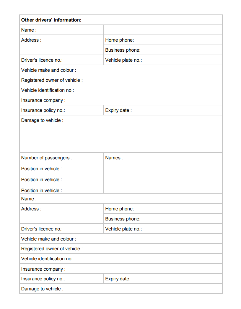 ● 如果涉及第三方或更多方车辆和司机,要记下以上提到的同样信息;