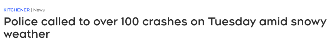 去年12月,滑铁卢地区出现了入冬以来第一场暴风雪,当地警方表示风暴第一天就接到了100多起车祸事件。