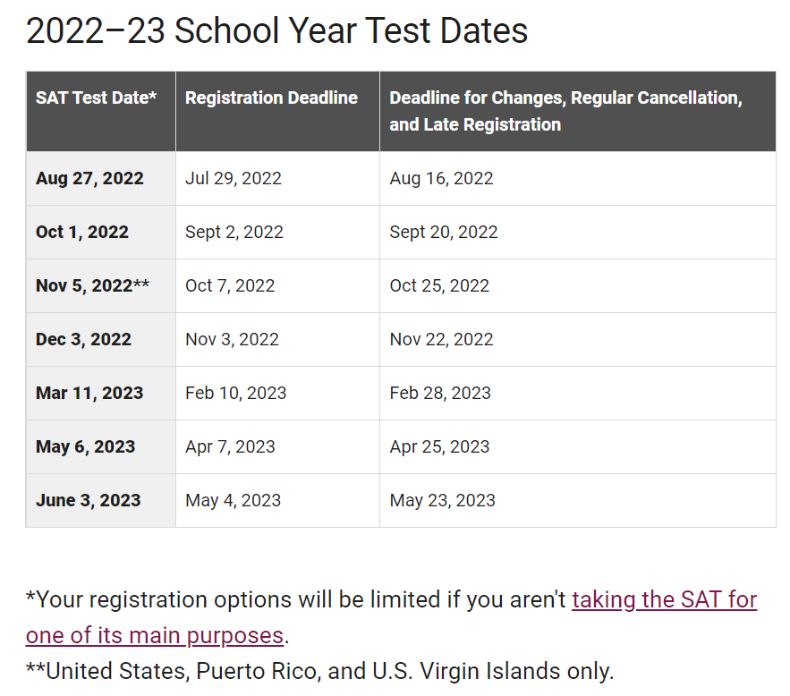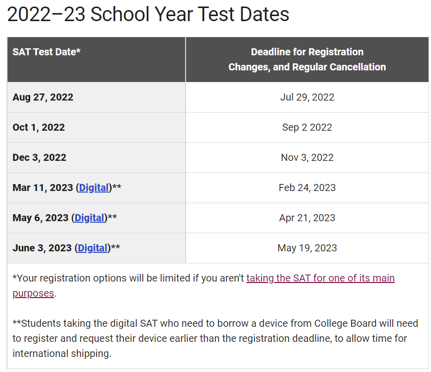 近日,SAT 考试主办方 College Board(美国大学理事会)悄悄的公布了 2022-23 学年的 SAT 考试时间,想要报考的同学们赶紧安排起来呀~