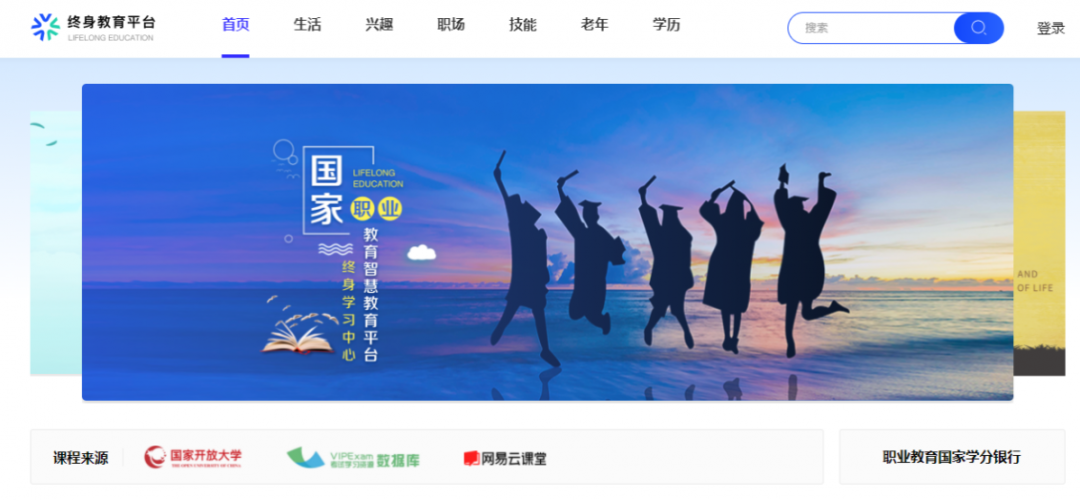 终身教育平台是国家开放大学为推进教育公平、减少“数字鸿沟”,在现有“一路一网一平台”基础上打造的全新学习平台。