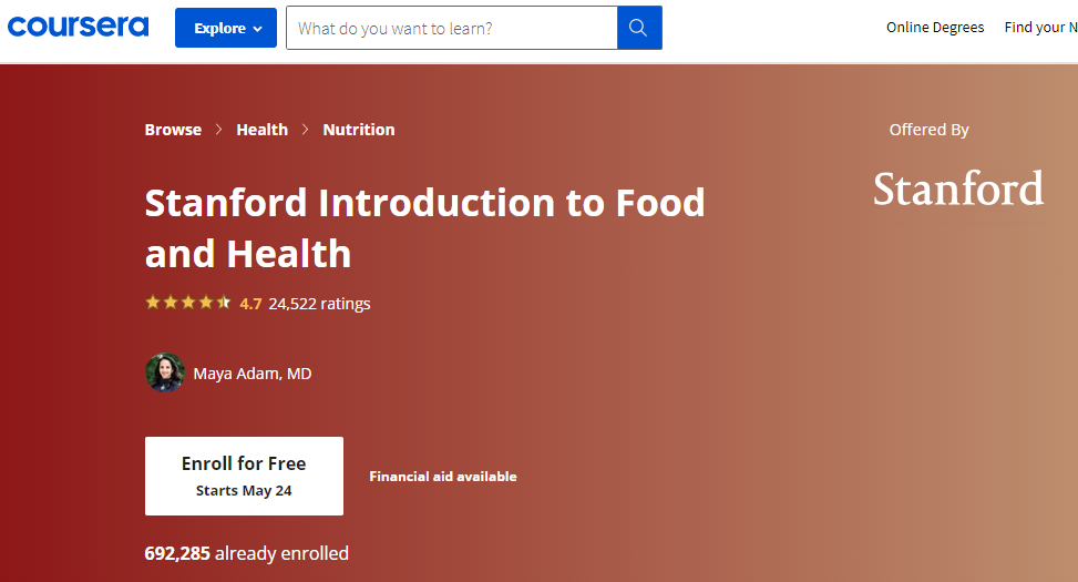 斯坦福大学这个短短五个小时的“食品与健康概论”课,就能提供给大家所需的相关信息和技能,以优化人们的饮食结构和生活作息。
