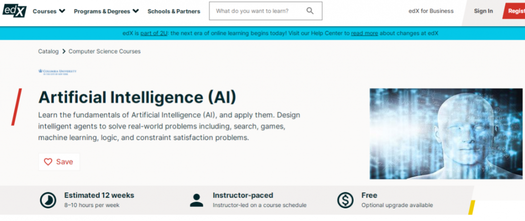 从手机人脸识别到军方部署的制导导弹,人工智能已经“入侵”了现代世界的角角落落。哥伦比亚大学在 edX 上开设的这门“人工智能”课程,会向你介绍 AI 的历史,阐述构建 AI 的基本技术,概述 AI 的发展方式,以及如何将其应用于大多数现代技术中。