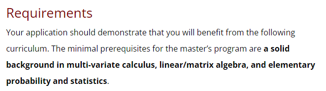 大部分数学硕士项目不会强制要求学生本科必须是数学本专业,但通常会要求申请者有数学相关课程的基础,包括高级微积分、线性代数、复杂变量、偏微积分和常微积分方程、概率论等。如果本科为非数学背景的学生,建议提前查看、补修目标院校所要求的先修课。