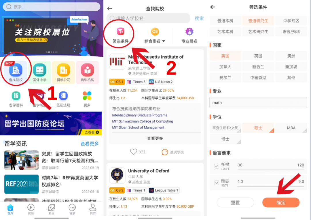 篇幅原因,无法一一举例,如果如果大家想了解更多数学专业或其它专业的院校信息,可以前往【留学咖啡馆APP】,进入“查找院校”,根据自己的需要进行条件筛选后,点击“确定”即可查找符合要求的学校。