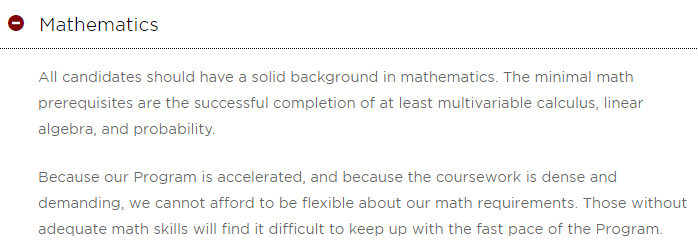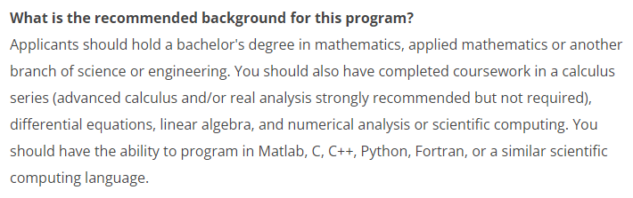 而华盛顿大学除了要求申请者持有数学等相关专业的本科学位,完成微积分、线性代数等基础课程外,还要求申请者需掌握必备的计算机语言。
