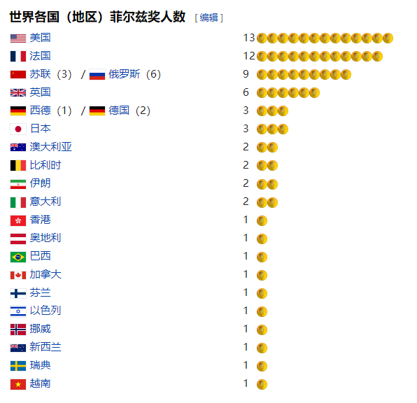 法国目前有近 4,000 名数学专业研究人员,是世界上数学家密度最高的国家之一。菲尔茨奖目前的 64 名获奖者中,法国占据了 12 席,也许数量上不及美国,但从人口比例来看,绝对遥遥领先。
