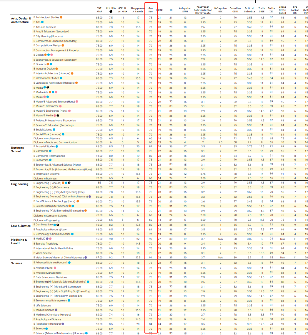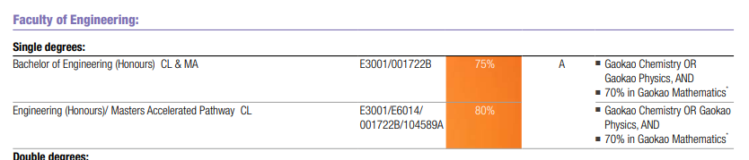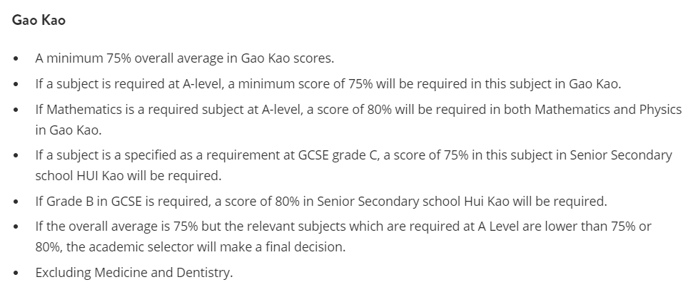 ● 如果是 A-level 要求的科目,则该科目在高考中的最低分数为 75%;