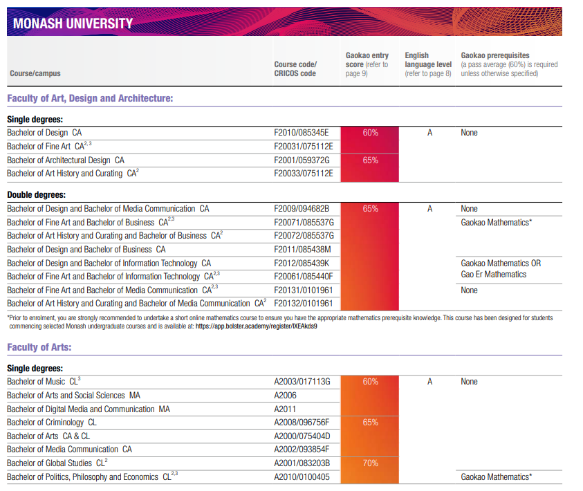 ● 接受全国高考成绩 (会计与金融/医学/牙医/兽医/法律/护理除外);