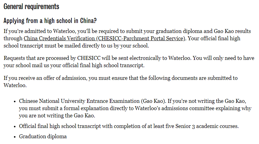 加拿大大部分学校都认可中国高考成绩,甚至大部分学校只需要申请人提供高中三年学习成绩和会考成绩即可。