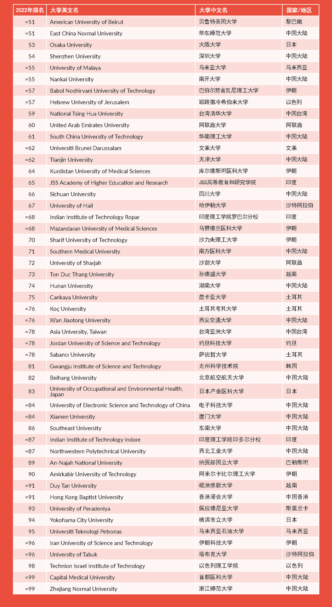 最后附上 2022 THE 亚洲大学排名 TOP100