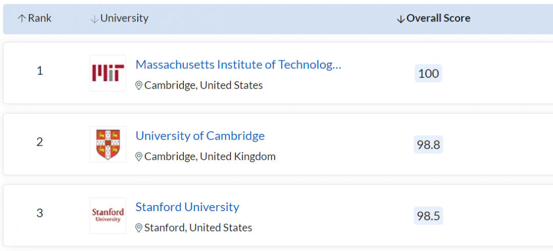 MIT 继续称霸全球第一;