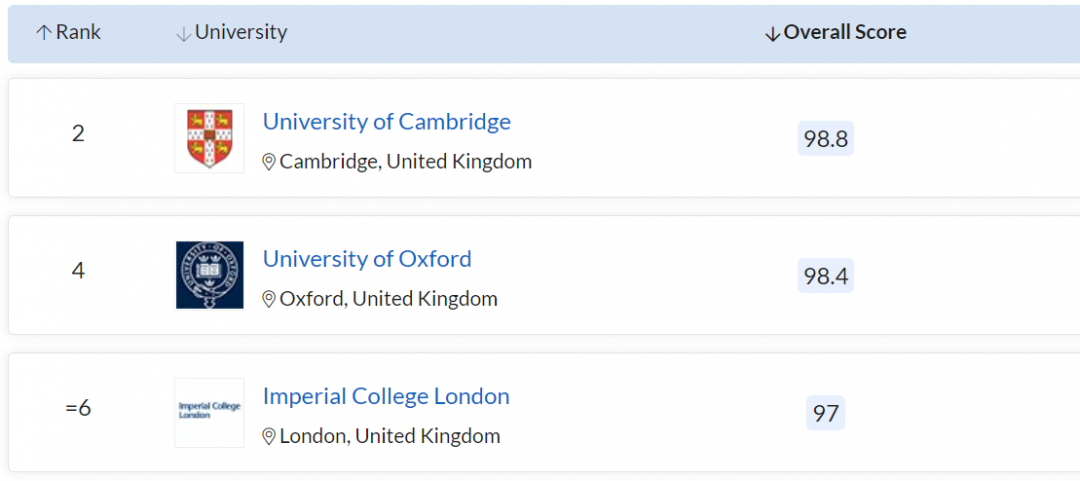 英国:剑桥反超牛津,位列第2