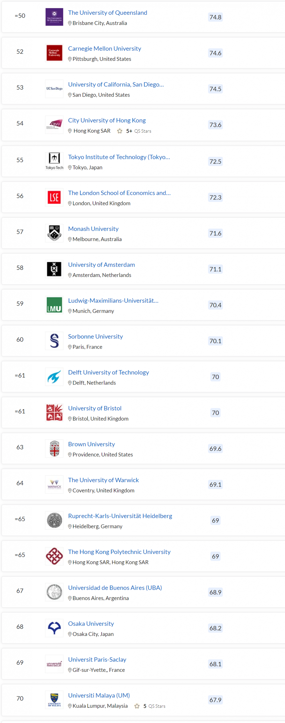 QS 世界大学排名(QS World University Rankings)是由英国一家国际教育市场咨询公司Quacquarelli Symonds(简称 QS)所发表的年度世界大学排名。