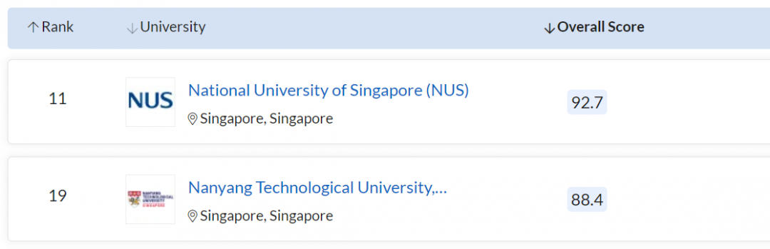 新加坡:南洋理工首次落后清北