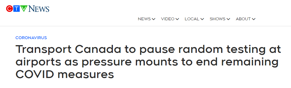 加拿大联邦政府宣布:从 6 月 11 日起,暂停在所有机场对已接种疫苗的旅客进行强制性随机 COVID-19 测试。