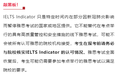 当然,以防万一,大家还是需要到目标院校官网查询确认学校是否接受 IELTS Indicator 成绩。