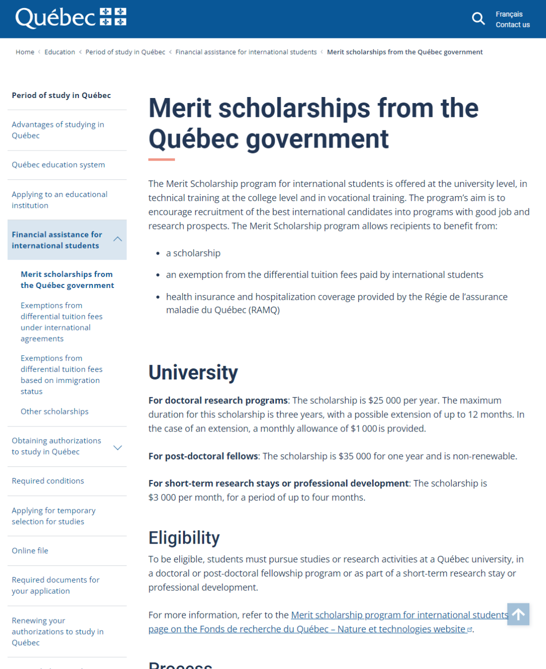 申请该类奖学金的学生必须在魁北克省的大学进行学习或研究活动。一般在学校官网就可以申请。