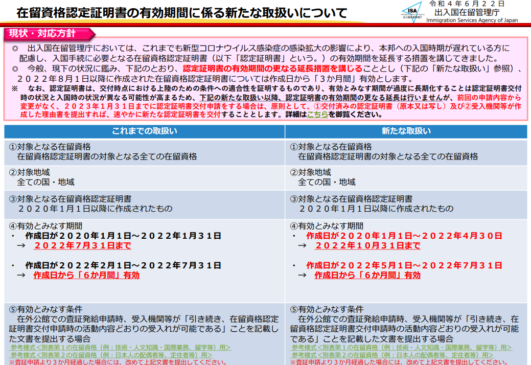受新冠疫情影响,关于已经过期的在留资格认定证明书的处理方法,日本政府决定再次延长有效期,具体如下。