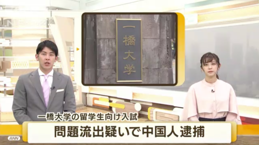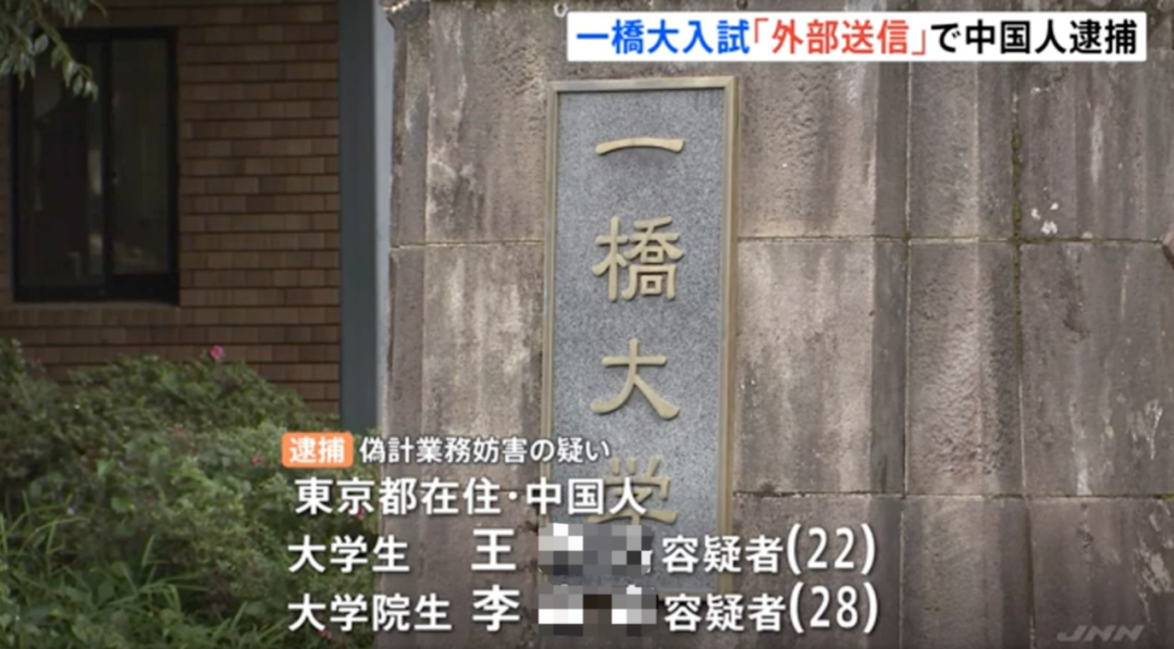 日本各大媒体在本月初披露了此事。据报导,一名中国留学生将一桥大学入学考试中的考题,通过微信发送给外部人员以寻求解答。目前,东京警视厅以涉嫌“伪计业务妨碍罪”(指通过虚假的信息扰乱正常业务的行为),将这两名留学生逮捕。