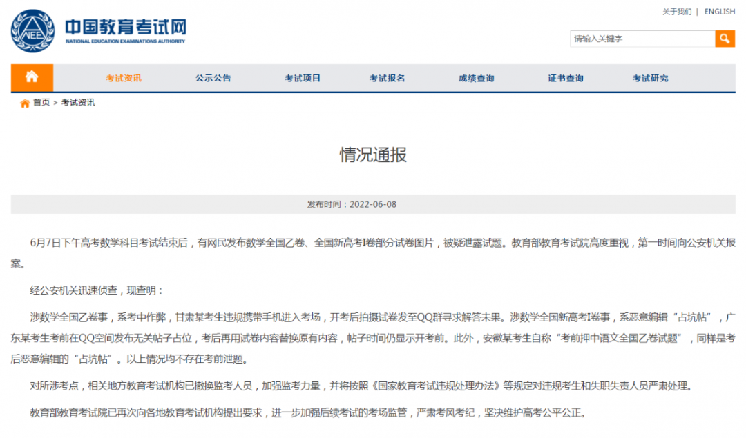6 月 7 日是 2022 中国高考的首日,一名甘肃考生在当天数学科目考试中作弊一事引发了网友热议。
