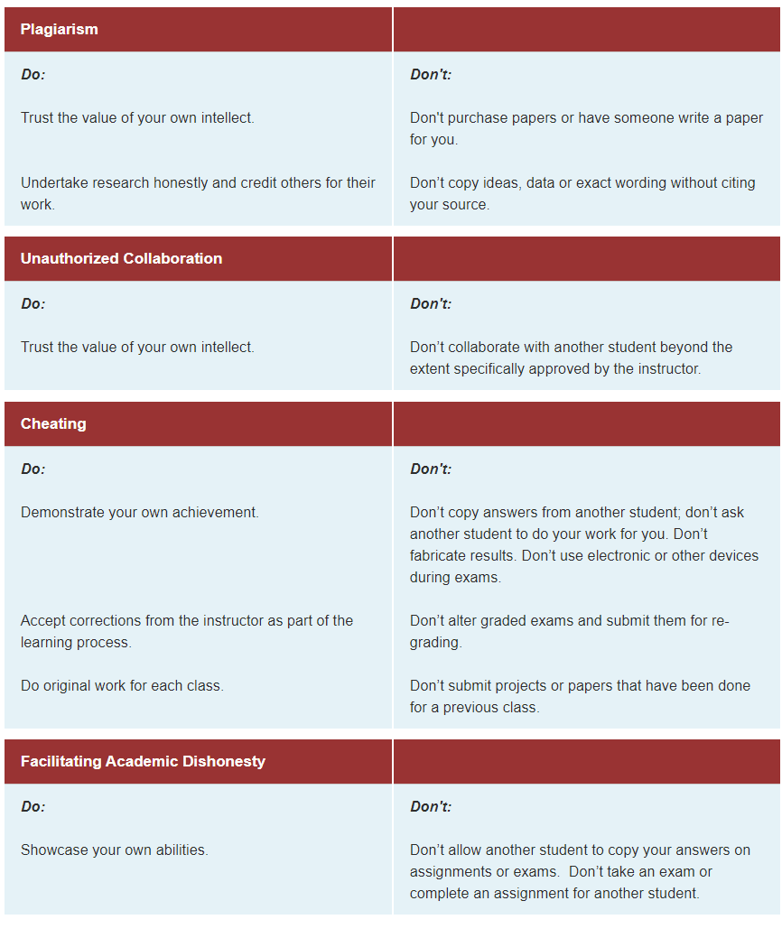 常见的学术诚信条例