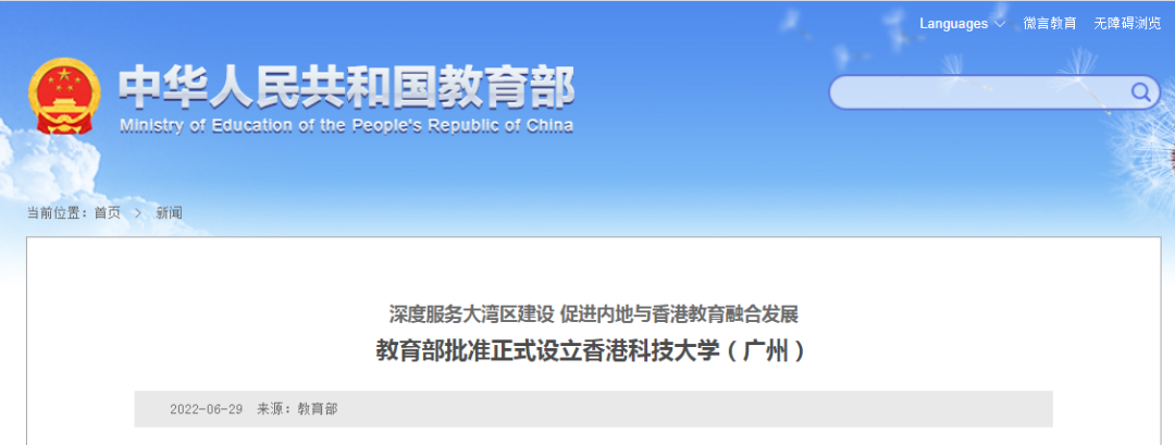 近日,教育部依法批准正式设立香港科技大学(广州)。