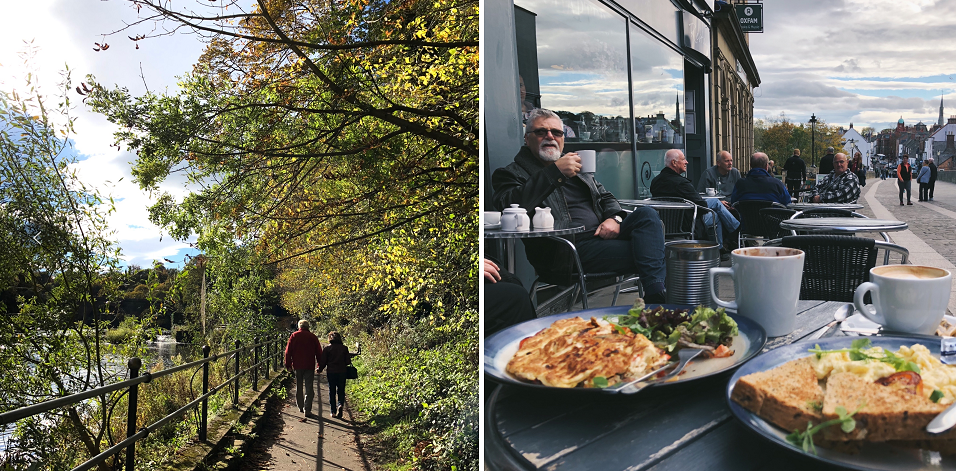 平时课余,我最爱约上三两好友在小镇徒步。每当心烦意乱的时候,只要在氛围感十足的杜伦河边走走,心情立马焕然一新;又或是去《哈利波特》取景拍摄地的杜伦城堡和大教堂走走看看,魂穿剧情的感觉也是别有一番风味!每到周末和节假日,城中广场还会有热闹的集市。这些是在都市中享受不到的简单平凡却又无比温馨的生活。