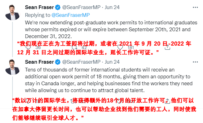 另外,值得一提的是,6月24日加拿大移民部长官宣:留学生毕业工作许可(PGWP),可再延期 18 个月!