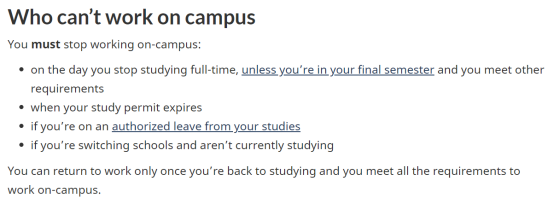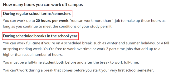 如果你是持有学习许可且就读于高等院校(University or College)的全职学生,可以在没有工作许可(Work Permit)下,在就读的校园内工作,且工作时长不受限制。
