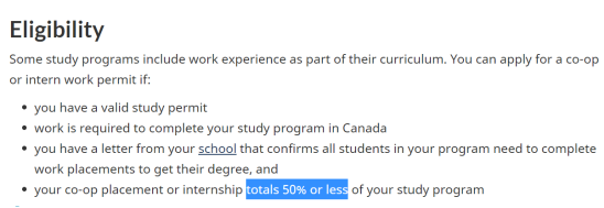 首先,也是最基本的条件,是你就读的课程项目必须要包含实习要求,也就是说,实习工作是你完成课程的必要条件。当然,学生必须持有该课程的有效学习许可。
