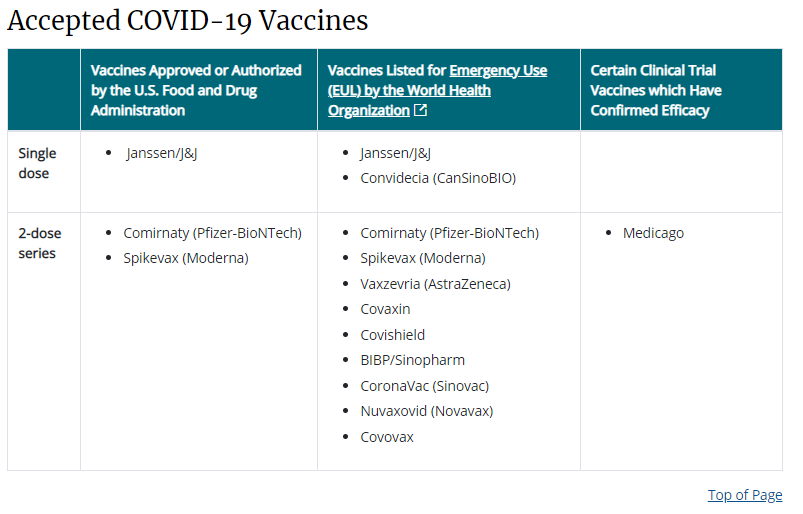如果你打算在美国逗留 60 天或更长时间,你必须在抵达美国后 60 天内或在医学上适当的时候全面接种 COVID-19 疫苗,除非你有医疗豁免权或没有到接种疫苗的年龄。