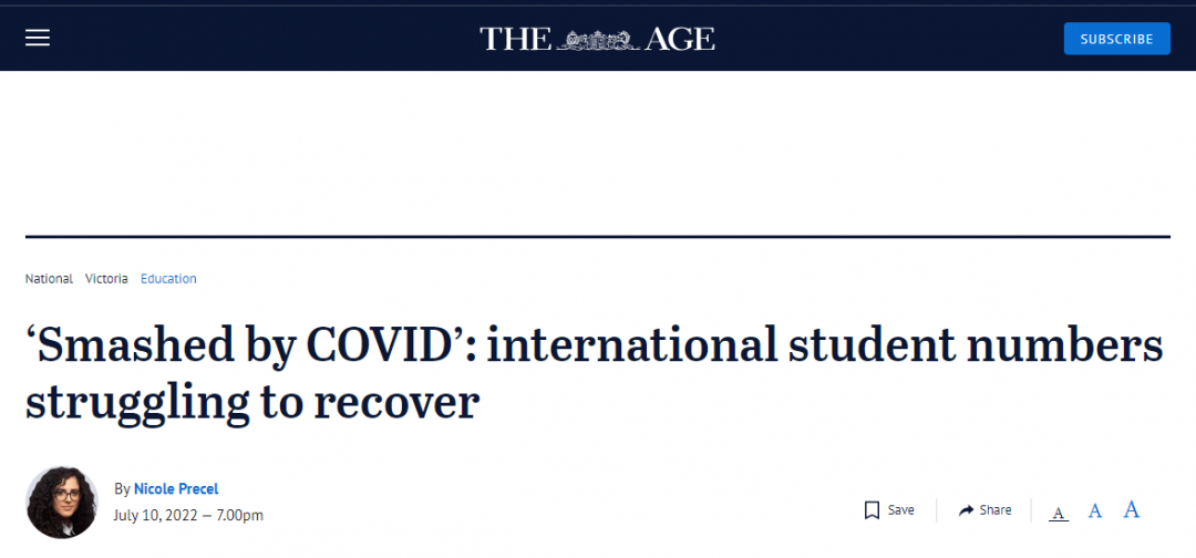 尽管国际学生的入学人数正在逐渐增加,但 2022 年 4 月维州的入境人数为 5930 人,比 2019 年新冠疫情之前的水平下降了 55%。