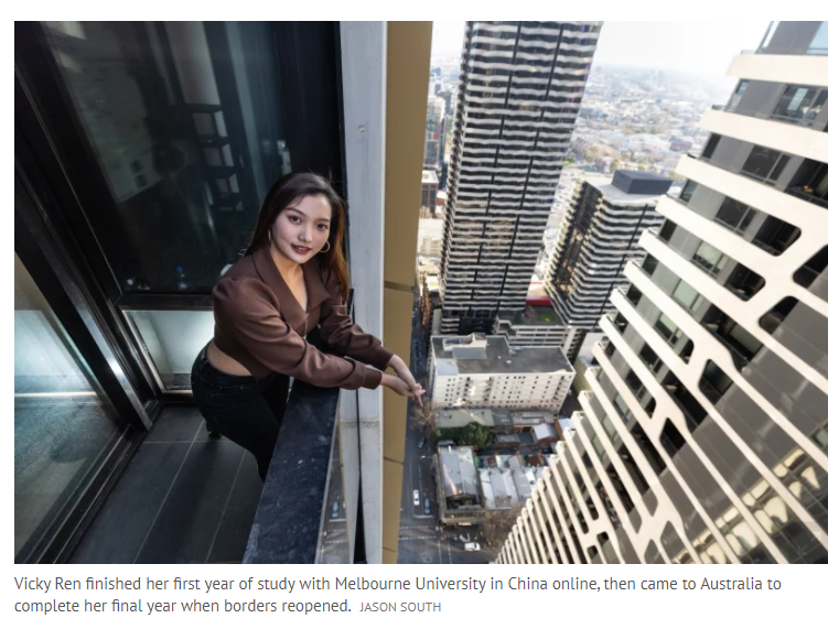 澳洲教育部数据显示,在截至 2022 年 4 月的一年中,维州 27% 的国际学生入学人数来自中国,23% 来自印度。