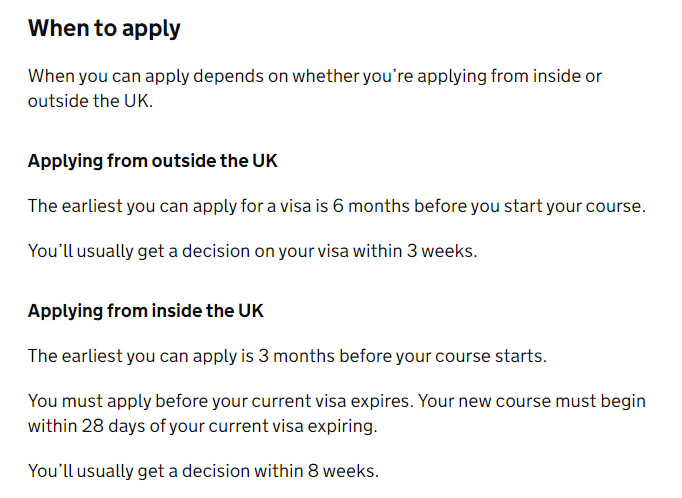 在英国境外,最早可以在你的课程开始前 6 个月申请签证。