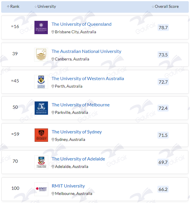 由于得天独厚的地理优势,澳洲的大学在农业教学方面也十分强势!在 2022 QS 农林学领域排名中,澳洲共有 7 所高校的农业学科跻身全球 TOP100!