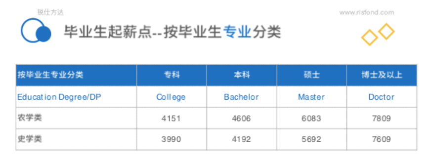 历年的招聘薪水,“农林渔牧”一定是在垫底的位置。根据《全国毕业生起薪点薪酬报告》, 2021 年,在全国 14 个专业门类中,农业毕业生平均起薪排名倒数第二,仅高于史学。其中,农学博士及以上平均起薪为 7809 元,硕士为 6083 元。
