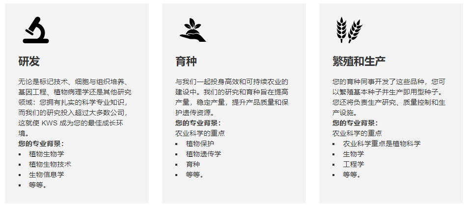 农林专业的毕业生可以在比如 KWS、科迪华、孟山都、先正达等企业,做研发、育种、生产、销售岗位。