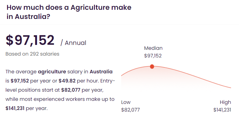根据 talent.com 的数据显示,在澳洲,农业工作人员的平均年薪为 $97,152。