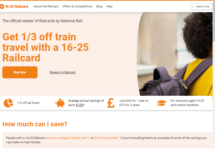 英国的公共交通系统很发达,基本没有火车到不了的地方,在英国25周岁以下的学生都可以办理一张学生卡:16-25 Rail Card,又称Young Person Rail Card,可以享受全价火车票30%的优惠。